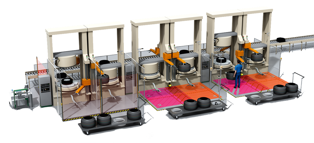 現(xiàn)代汽車(chē)工業(yè)生產(chǎn)采用的是大工業(yè)化生產(chǎn),在汽車(chē)總裝車(chē)間輪胎和輪轂組合工序,大量的視覺(jué)系統(tǒng)被應(yīng)用。輪胎標(biāo)識(shí)點(diǎn)是視覺(jué)導(dǎo)引重要的參考點(diǎn),如果標(biāo)識(shí)點(diǎn)丟失將嚴(yán)重影響視覺(jué)系統(tǒng)運(yùn)行,導(dǎo)致汽車(chē)生產(chǎn)線(xiàn)停線(xiàn)、計(jì)劃紊亂、成本上升、生產(chǎn)效率下降等后果。